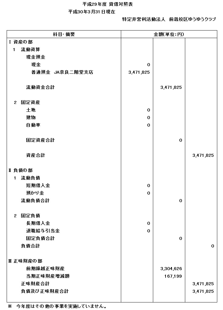 平成29年度貸借対照表を公開します。