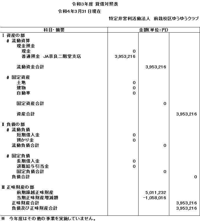 令和3年度貸借対照表を公開します。
